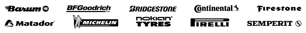 BARUM, BFGoodrich, BRIDGESTONE, CONTINENTAL, FIRESTONE, GOOD-YEAR, MATADOR, MICHELIN, NOKIAN, PIRELLI, SEMPERIT.
